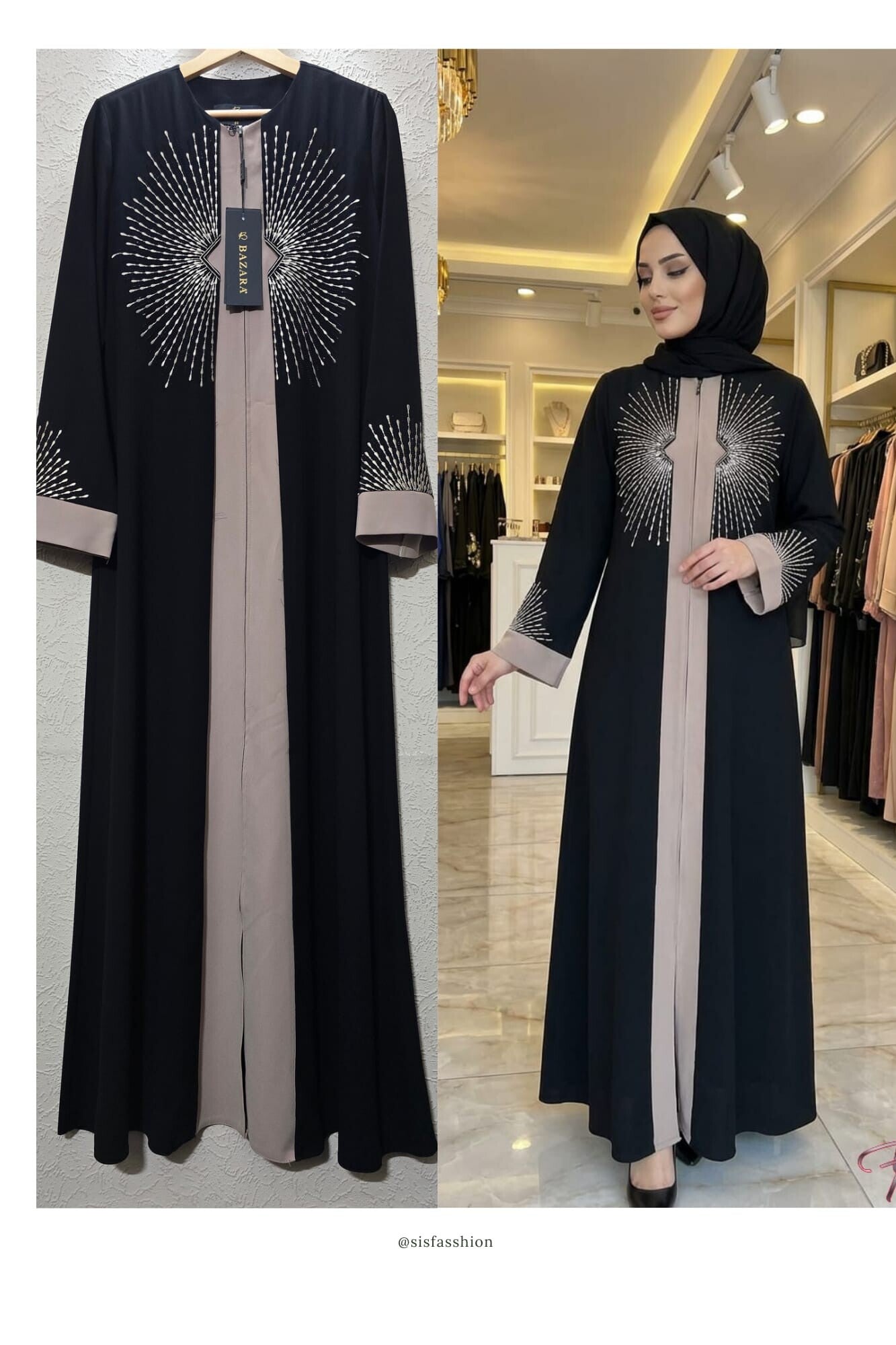 Black and beige abaya